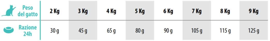 ADDITIVI PER KG. Additivi nutrizionali: 3a672a Vitamina A 22500 UI, 3a671 Vitamina D3 1500 UI, 3a700 Vitamina E (t.r. alfa toc. Acet.) 185 mg, 3b405 Rame 19 mg, 3b101 Ferro 38 mg, 3b502 Manganese 76 mg, 3b605 Zinco 86 mg, 3b201 Iodio 4,0 mg, 3b801 Selenio 0,2 mg, Taurina 2000 mg, Vitamina B1 7,2 mg, Vitamina B2 7,2 mg, Vitamina B6 6,0 mg, Vitamina B12 0,05 mg